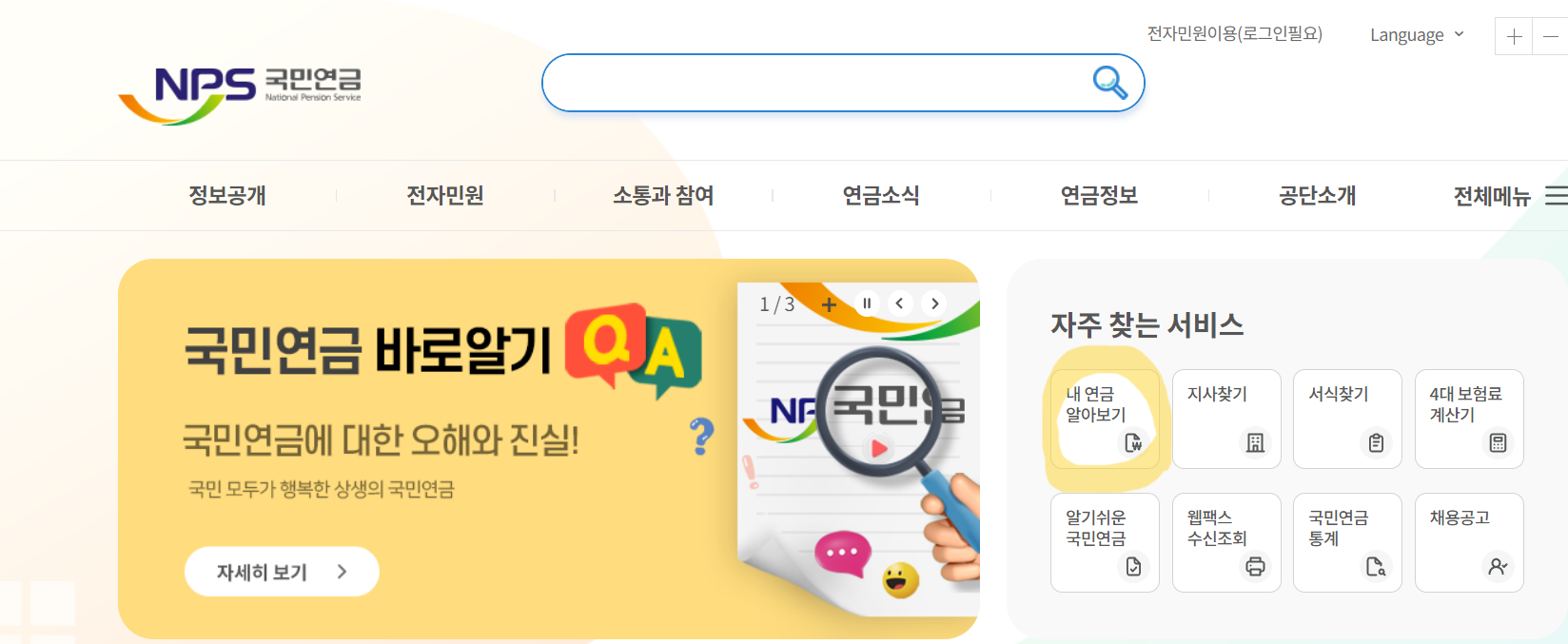 로그인 후 내 연금 알아보기를 클릭합니다.