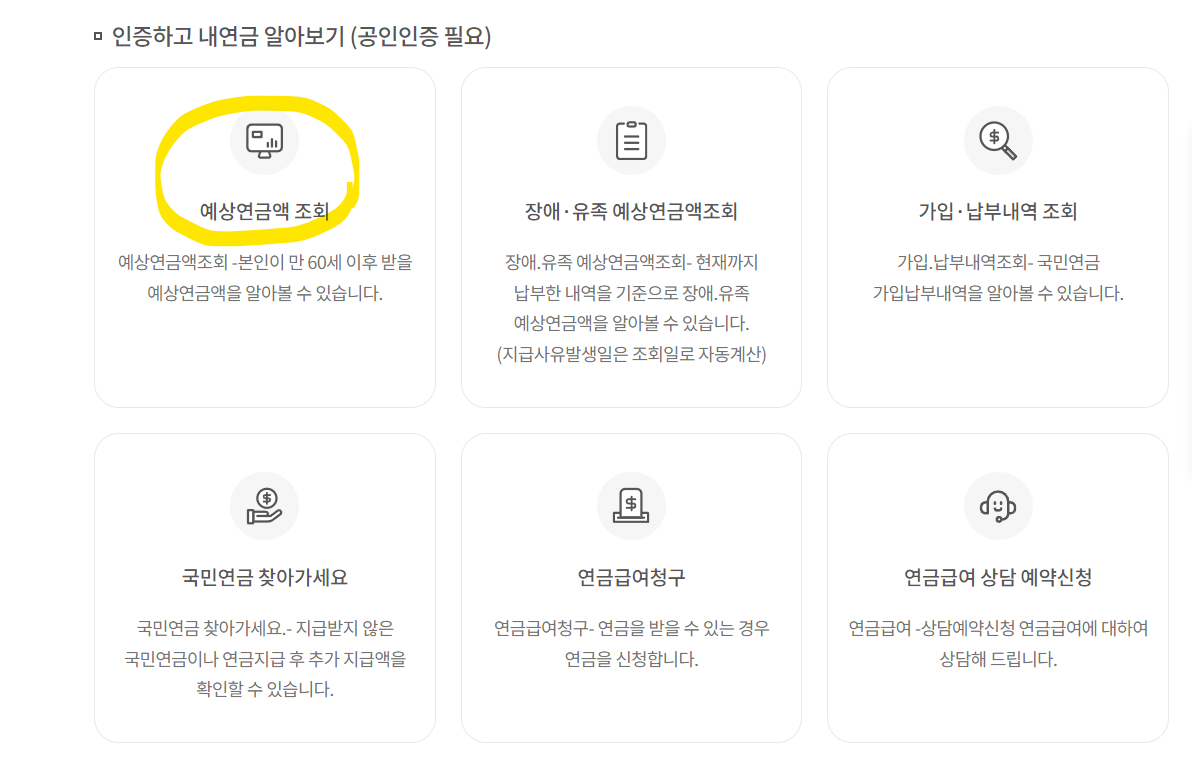 예상 연금액 조회를 누르면 원하는 정보를 얻을 수 있습니다.