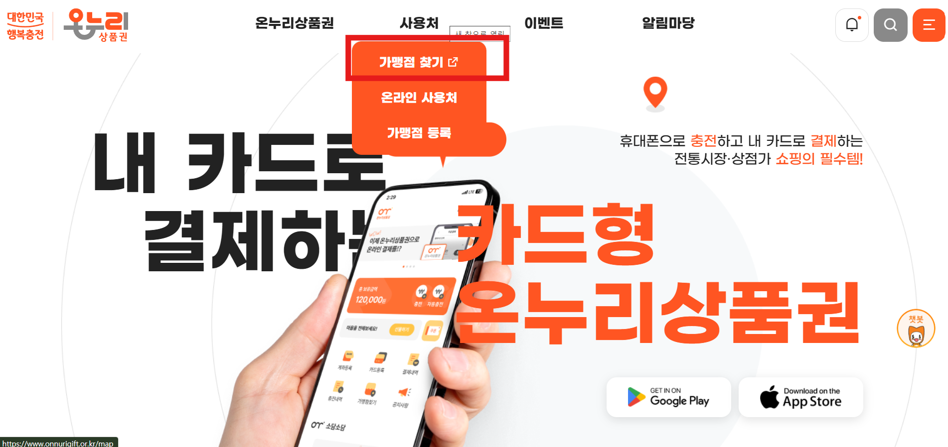 온누리 상품권 공식 사이트에 들어가서도 가맹점을 찾을 수 있습니다.