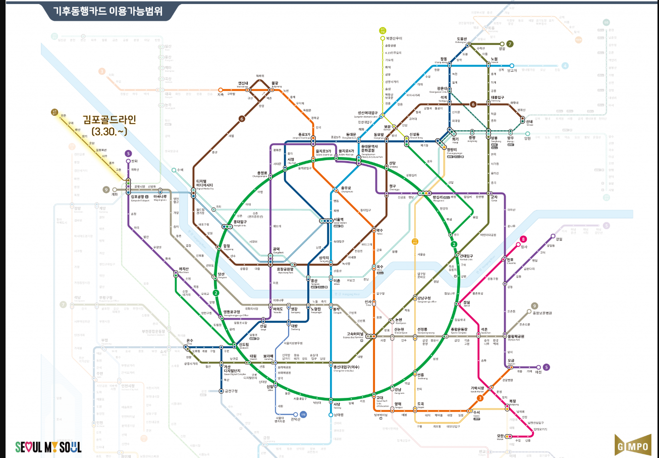 김포: 김포골드라인 전 구간에서 하차 시 사용 가능합니다.