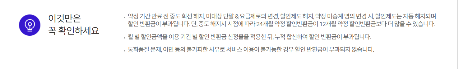 - 약정 없이 요금제를 선택할 수 있지만, 할인 혜택이 없으므로 요금이 상대적으로 비쌀 수 있습니다.