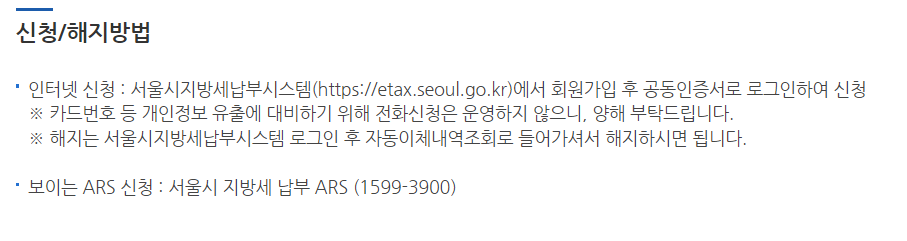 카드 자동납부의 경우 아래의 신청/해지 방법에 대해서도 잘 읽어보시기 바랍니다.