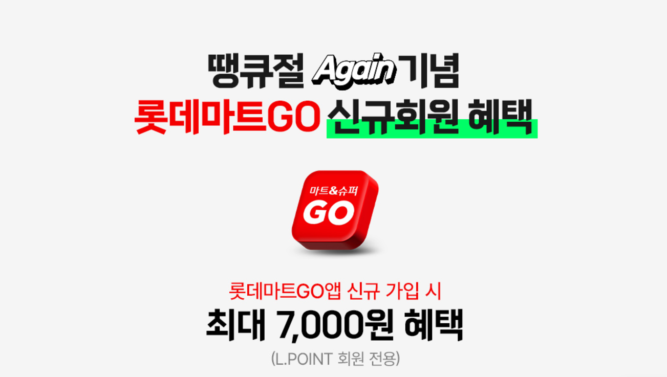 이번 땡큐절 행사 기간 동안 롯데마트 Go를 신규가입하신 분들이라면, 최대 7000원까지 혜택을 줍니다. 아래 이미지 클릭하시면 관련 내용 확인 가능합니다.