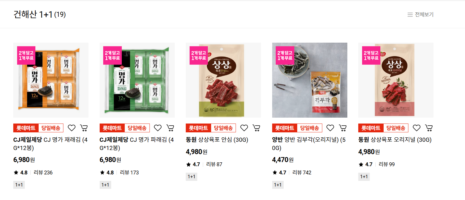 이 외에도 가공식품, 샴푸나 휴지같은 일상용품과 생활용품도 최대 50% 할인하고 있습니다.