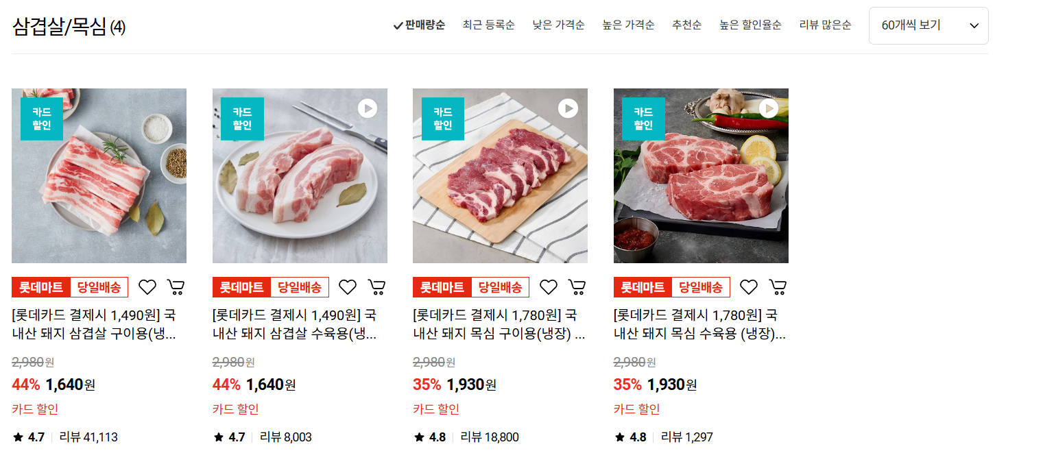 삼겹살과 목심도 30~40%대의 할인 가격으로 구매 가능합니다. 김장할 때 겉절이에다 돼지고기 먹으면 너무나도 찰떡궁합인데요. 돼지고기 좋아하시는 분들이 저렴하게 구매하기 좋으실 것 같네요.