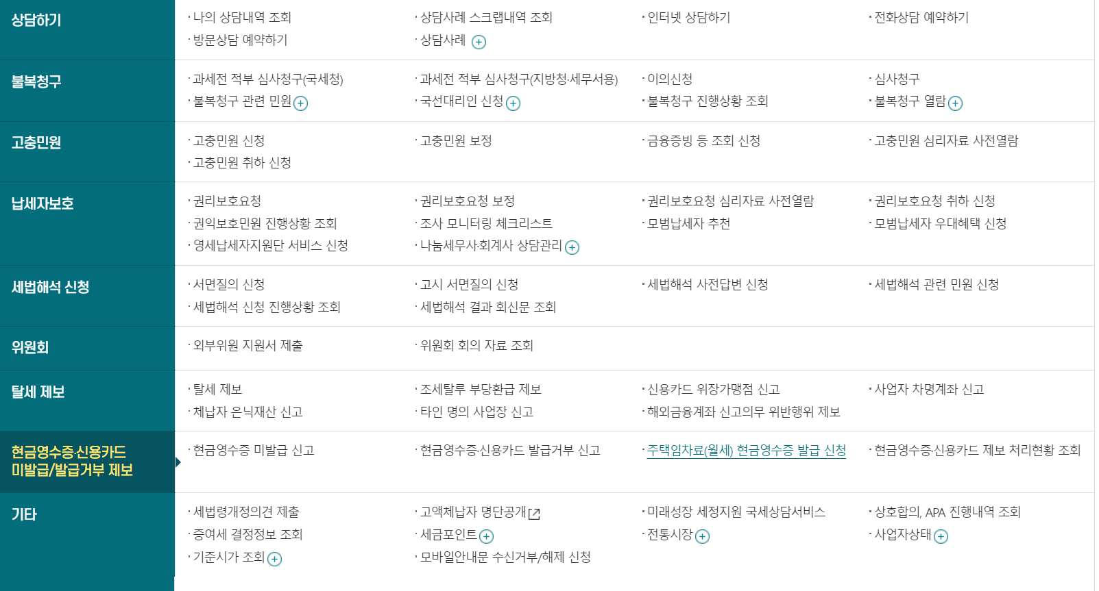 2. 현금 영수증 신용카드 미발급/발급거부 제보에서 주택임차료(월세) 현금 영수증 발급 신청을 누릅니다.