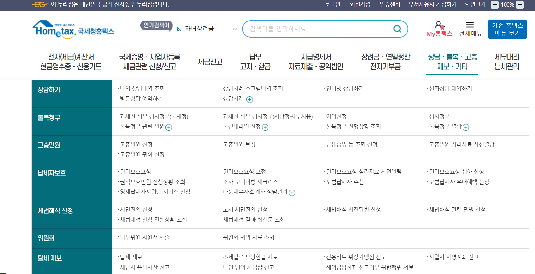 1. 우선 홈페이지에서 상담 · 불복 · 고충제보 · 기타에 들어갑니다.